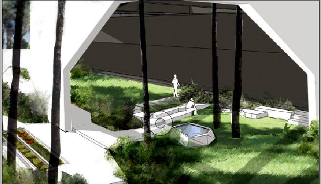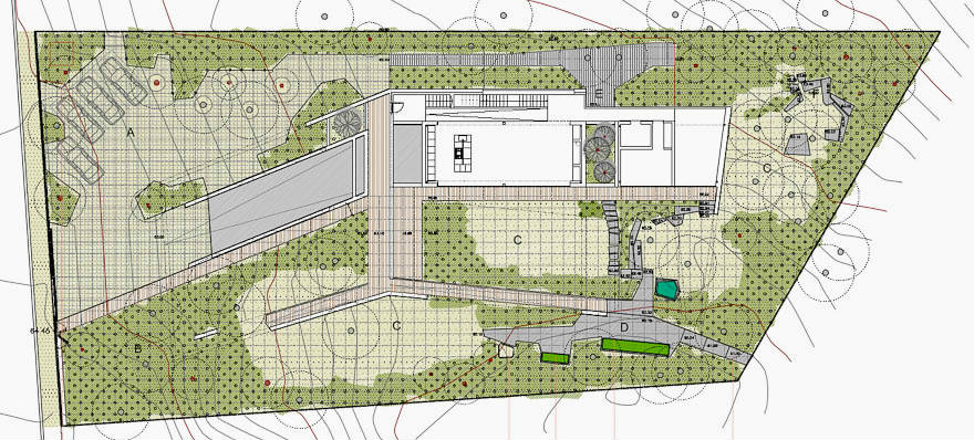 O projecto de espaços exteriores pretende constituir essencialmente uma articulação muito efectiva entre o edifício de habitação e o conjunto em que se insere – uma herdade de Pinhal com campo de Golfe. A intervenção incide no restabelecimento de um substrato arbustivo autóctone onde, a abertura de algumas clareiras, associado ao pinhal que se pretende manter e regenerar, configura zonas de estadia.