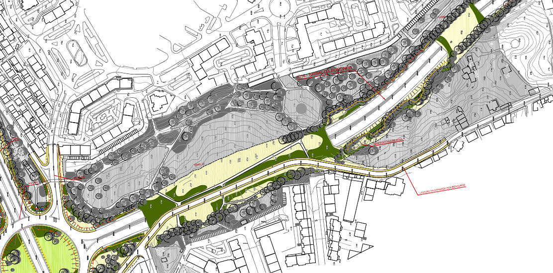 A implementação do Último troço da CRIL (entre Buraca e Pontinha), constituía, na perspectiva da equipa concorrente, uma grande oportunidade de regeneração urbana e social de um tecido urbano denso e desconexo, característico de um território de fronteira entre dois concelhos. Neste sentido propôs-se a pontual dilatação da faixa de áreas, a expropriar, possibilitando a criação de um contínuo linear de espaços verdes, adjacentes ao traçado da via, que incorporavam equipamentos para o recreio e lazer (actualmente sem alternativa) das respectivas populações, bem como a circulação pedonal e ciclável entre si e até ao grande Parque de Monsanto.